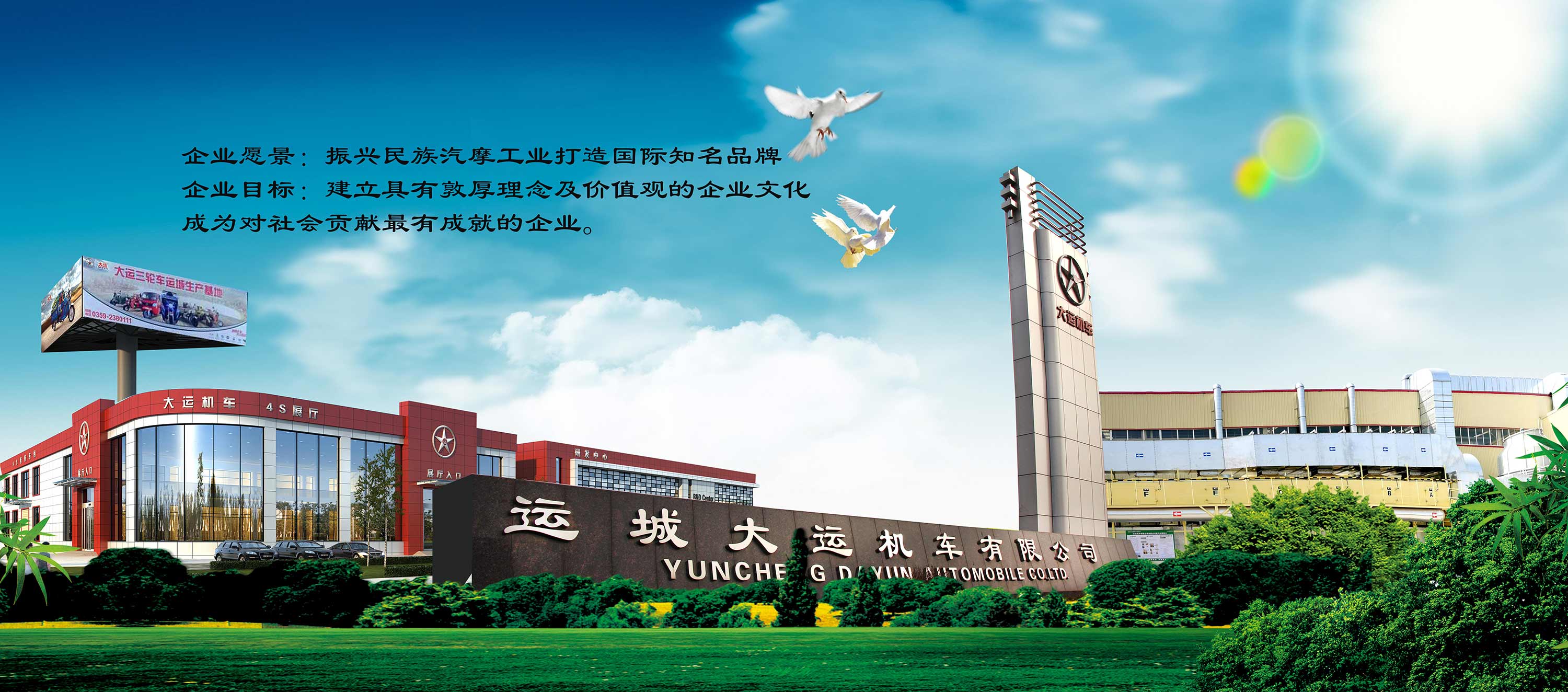 大運(yùn)集團(tuán)有限公司(前身為山西通達(dá)(集團(tuán))有限公司)創(chuàng)建于1987年,位于山西省運(yùn)城市運(yùn)城經(jīng)濟(jì)開發(fā)區(qū),是集商用車、摩托車研發(fā)、制造、銷售、服務(wù)及國(guó)際貿(mào)易,房地產(chǎn)開發(fā),物流配送,工程建設(shè)等為一體的跨地區(qū)、跨行業(yè)、多元化發(fā)展的大型民營(yíng)企業(yè)集團(tuán),位居中國(guó)民營(yíng)企業(yè)500強(qiáng)和山西省百?gòu)?qiáng)民營(yíng)企業(yè)之列。集團(tuán)現(xiàn)有員工10000余人,總資產(chǎn)200億元,旗下?lián)碛羞\(yùn)城、成都、十堰、廣州四個(gè)生產(chǎn)基地,產(chǎn)品遠(yuǎn)銷全國(guó)各地和亞洲、歐洲、非洲、美洲等100多個(gè)國(guó)家和地區(qū)。